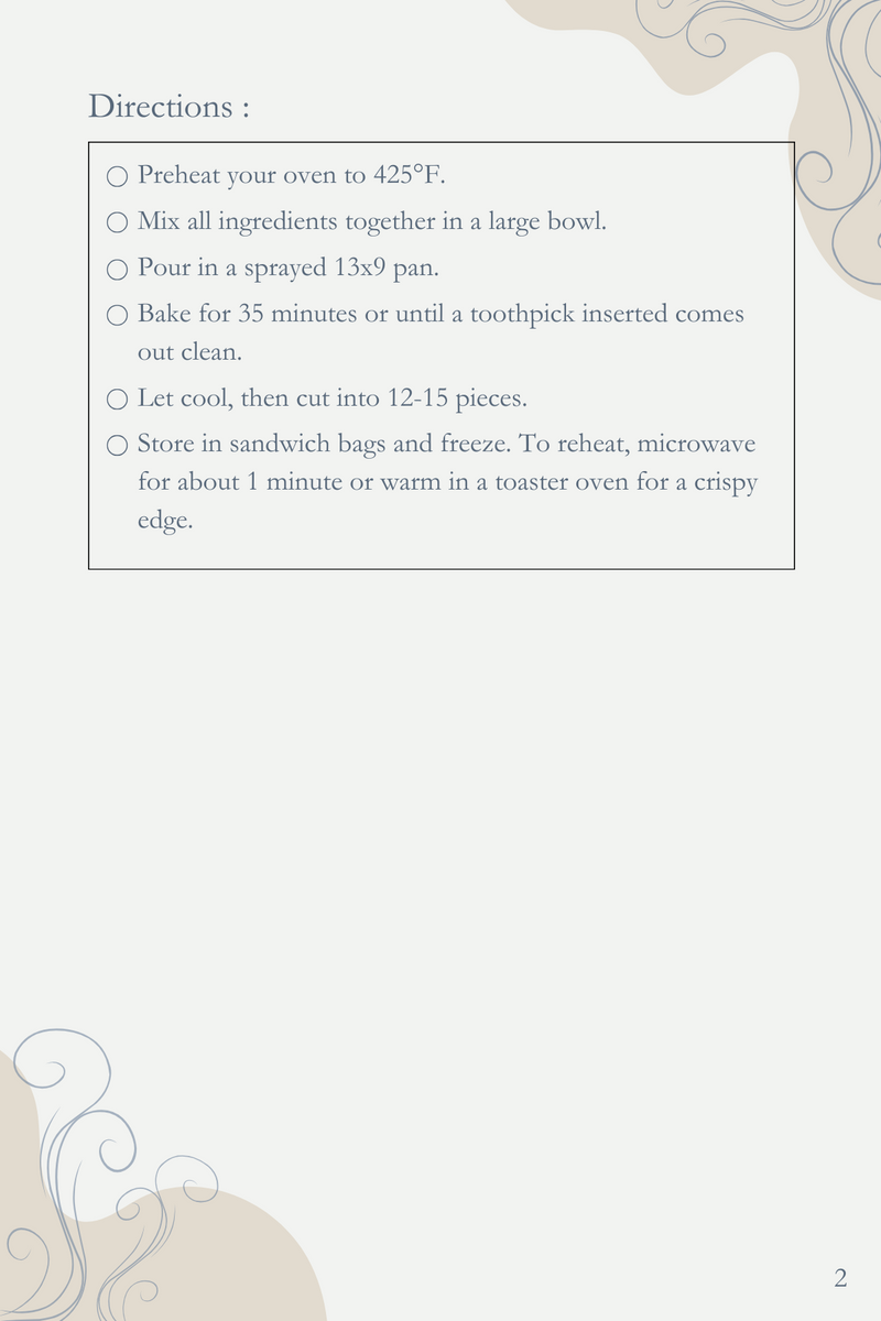 This recipe is easily adaptable—apples, pineapple, and even pumpkin work well. You can also add nuts, coconut, raisins, or other mix-ins to suit your taste.