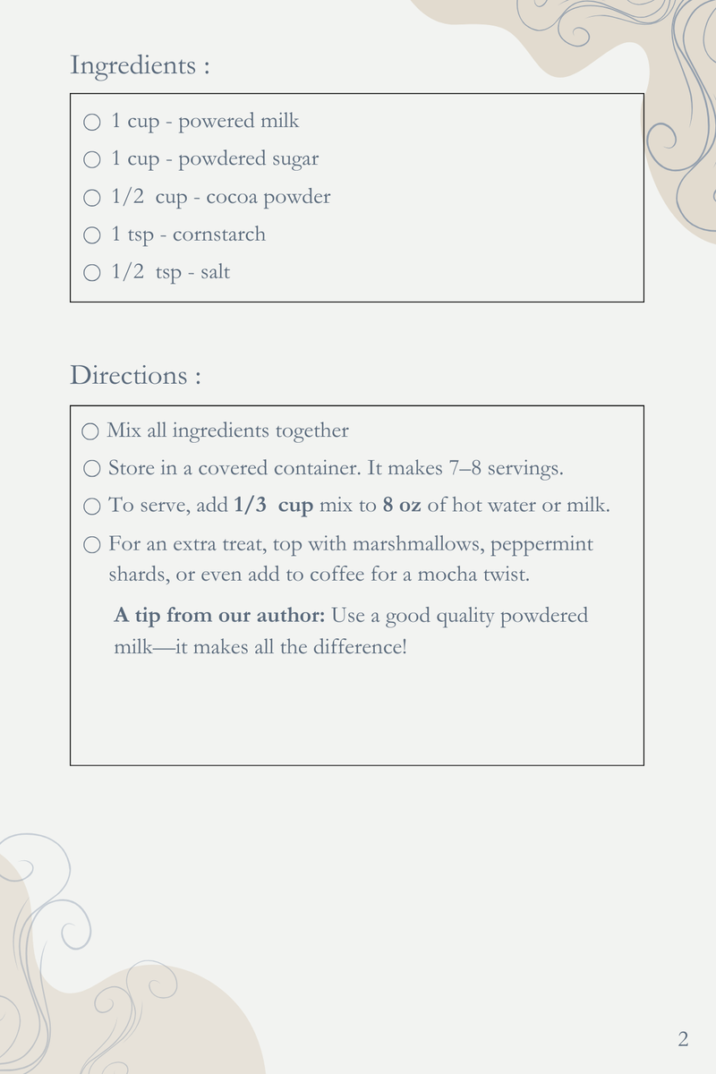 Since that chocolate aroma had me craving something cozy, I decided to make my own hot chocolate mix. Store-bought options can have a surprisingly long list of ingredients—one I checked had 16! This simple version from Terri Cooper on TikTok has just five, and it’s rich, creamy, and delicious.