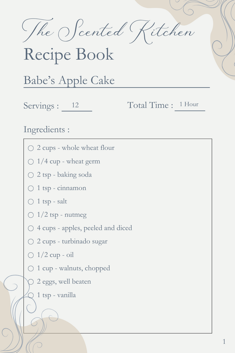 In many ways, blogs have taken over the role that small-town newspapers once played, offering a glimpse into people’s kitchens, lives, and passions. Here at The Scented Kitchen, we hope to bring you that same warmth and nostalgia. Try Babe’s Apple Cake, and let it transport you back to a simpler time.