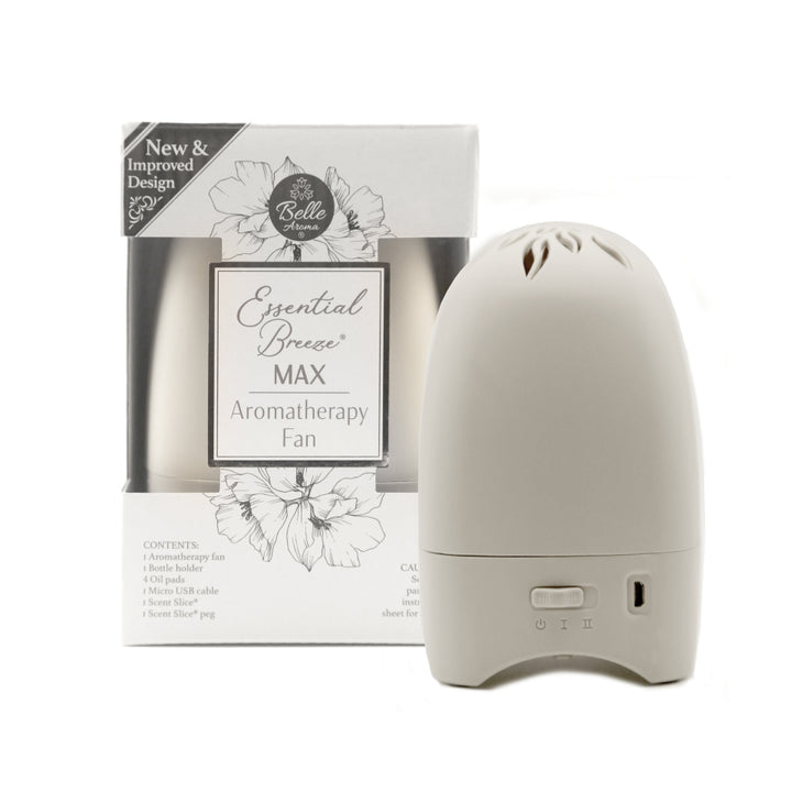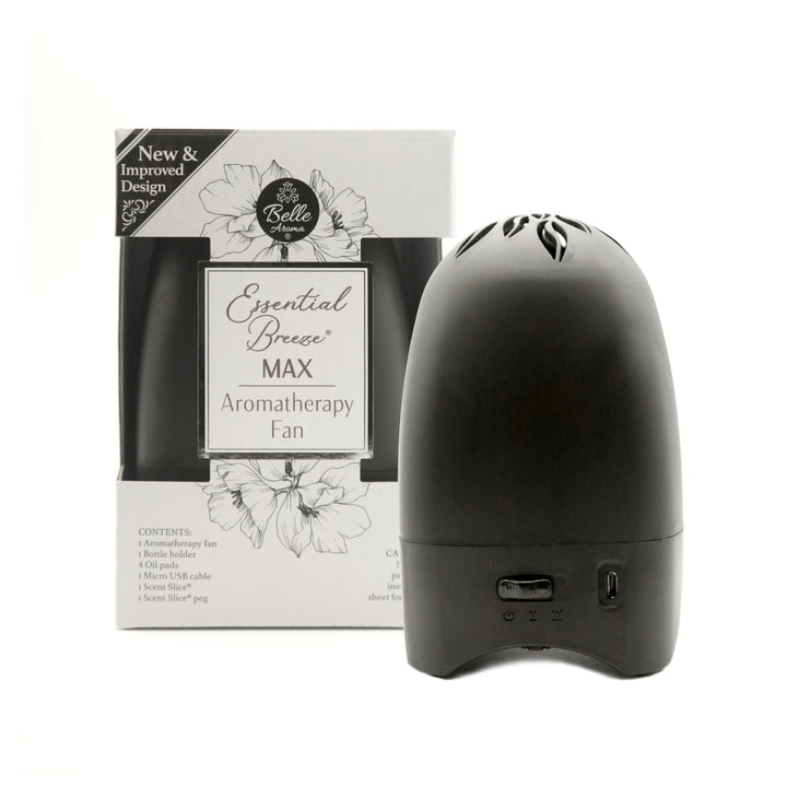 The Essential Breeze® Max Aromatherapy Fan takes fragrance to the next level—offering maximum performance with minimal effort. This patented, gravity-fed, waterless and heatless diffuser simplifies aromatherapy for today’s on-the-go consumer. Designed for convenience and portability, it delivers consistent, long-lasting fragrance with a simple “set it and forget it” operation.
