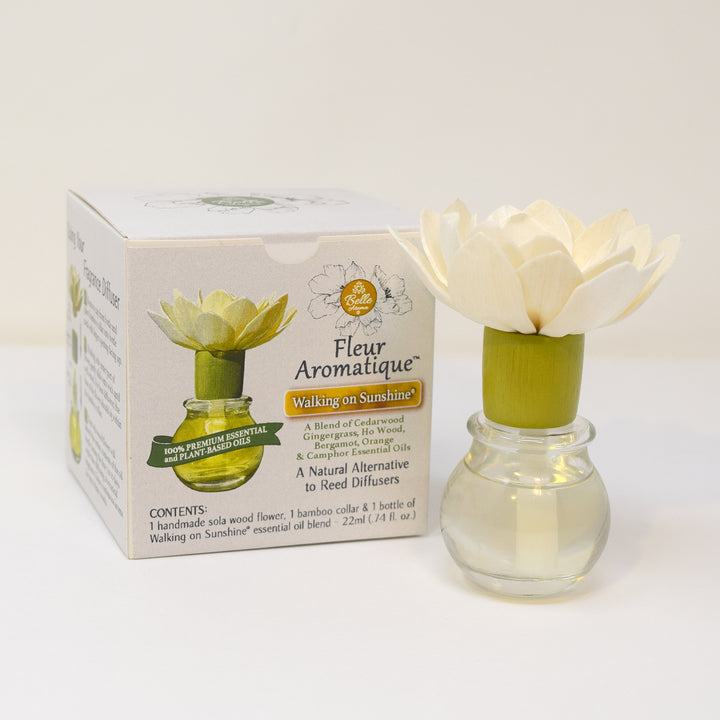 - Walking on Sunshine® – Fresh and energizing: Camphor, Gingergrass, Ho Wood, Bergamot, Orange, Cedarwood